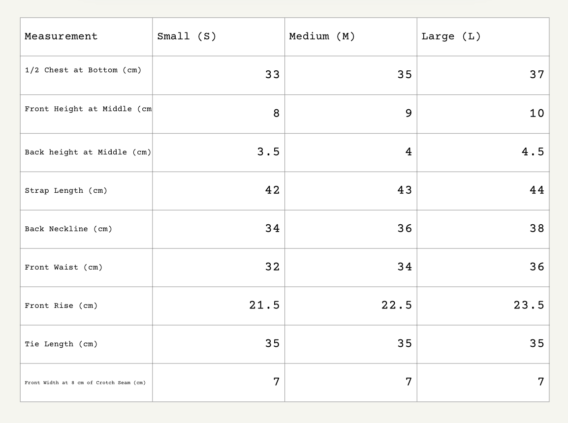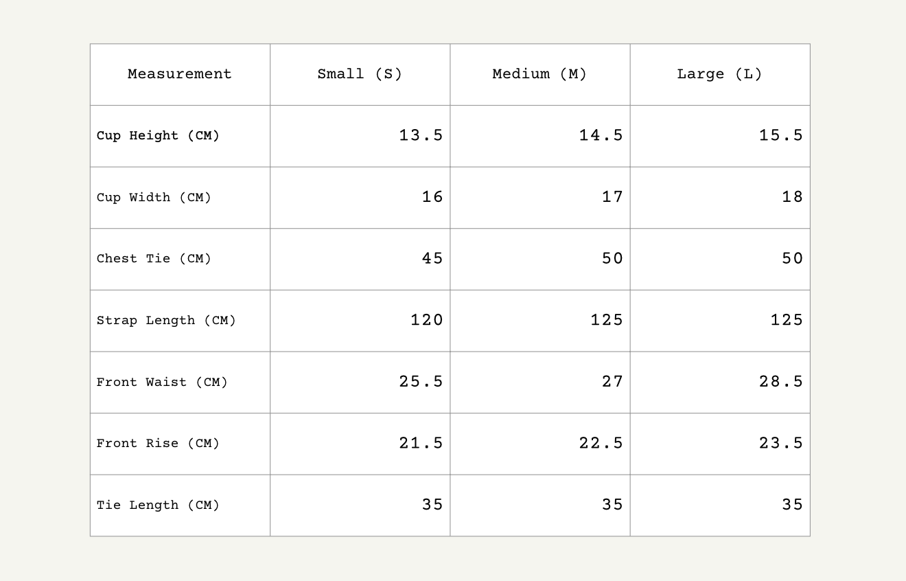 - Compare with your own bikini measurements to choose the right size.